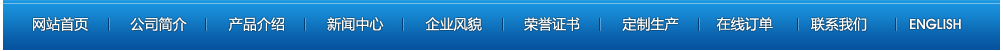 網站首頁 | 公司簡介 | 產品介紹 | 新聞中心 | 企業風貌 | 榮譽證書 | 定制產品 | 在線訂單 | 聯系我們 | ENGLISH 【后臺管理】